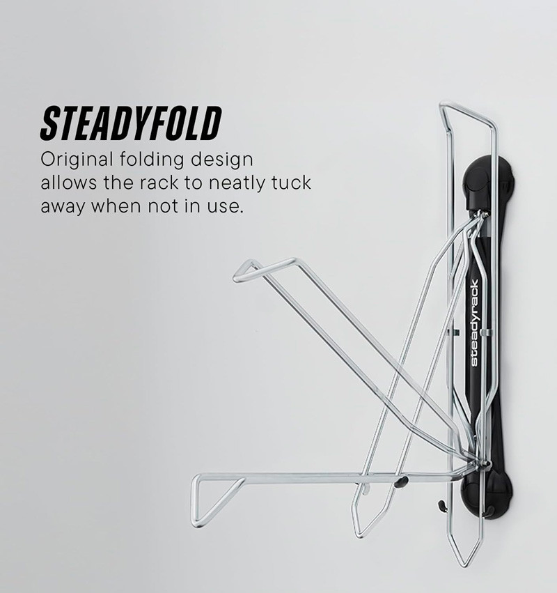 Space-saving pivot design – lets you rotate your bike close to the wall for a compact fit.