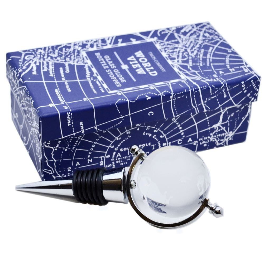 This chic Glass Globe Bottle Stopper makes a fabulous gift for travellers and of course for anyone who loves to relax with a glass or two of wine! Presented in a gift box, the metal and rubber stopper is crowned with a glass globe which is etched with a world map, which can spin on its own axis.