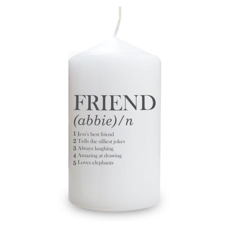 - 1 x Personalised Dictionary Definition Friend Candle (in Organza Bag)