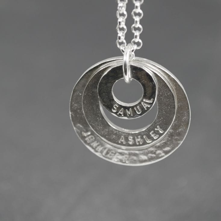This is a beautiful way to celebrate loved ones and keep them close to your heart. This gorgeous sterling silver necklace is made of three interconnected rings, and each of the rings can be individually personalised with any name or words of your choosing. Whether the recipient is a mother with her