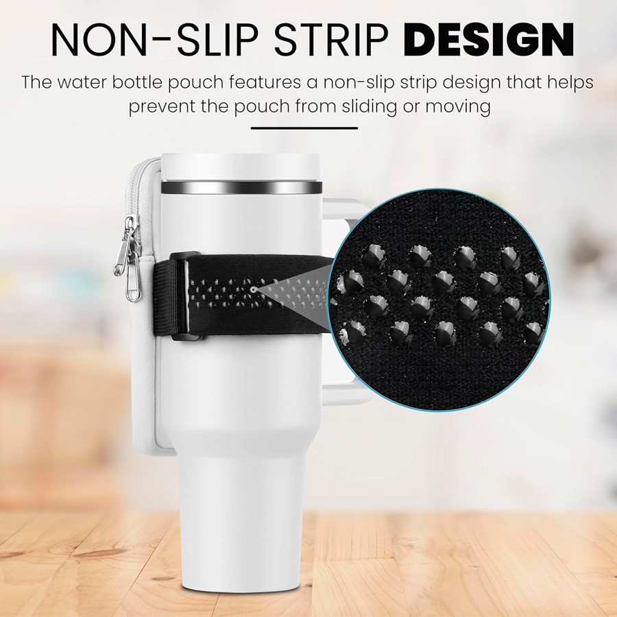 The Water Bottle Carrier Bag with Zipper Pocket is a stylish hands-free holder for your tumbler or bottle. Features include a secure zip pocket for phone & keys, adjustable strap, and durable fabric. Perfect for walks, travel, gym or commuting.